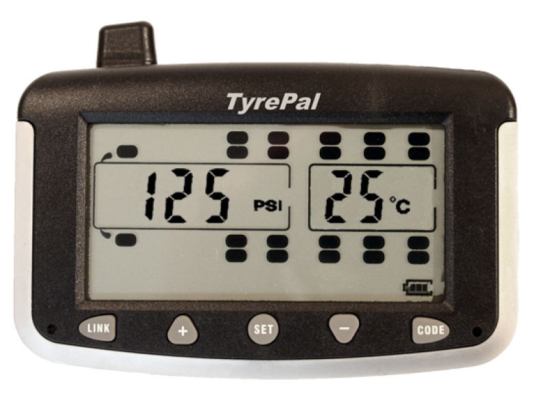 The TyrePal system continuously monitors the pressure and temperature of our vehicles tyres – and warns when things are going wrong:
