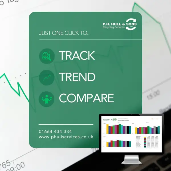 1. Tracking Your Waste: Our portal enables businesses to track waste costs and volumes effectively, allowing them to spot and respond to any deviations quickly. You can easily overlay tracking charts with production figures to monitor changes or seasonal variations, ensuring proactive waste management.